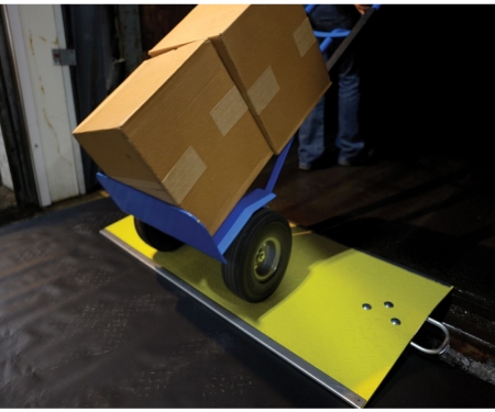 A Fiberglass Dockplate is a simple and manageable way to bridge the gap between areas. A lightweight construction enables simple maneuverability, while the brightly colored anti-slip design supports visibility when approaching entries and exits. A handle is included on either side for a more even lifting. A metal edge is attached to both sides of the dockplate to diminish the surface differences, as well as, protect the units overall structural integrity.