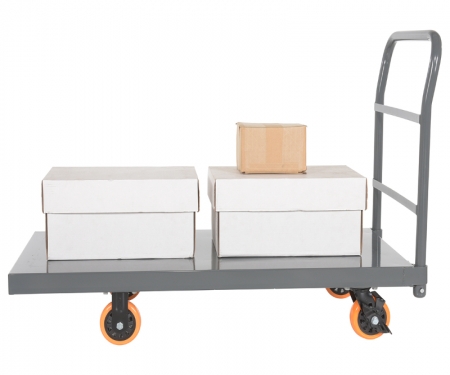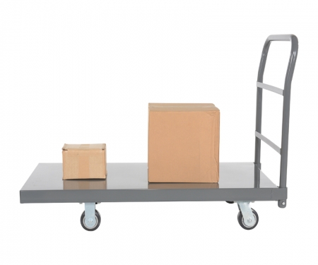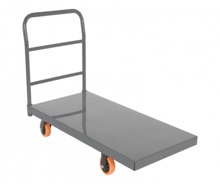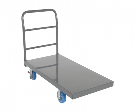 A steel platform truck is a perfect addition to any warehouse or shipping center. The steel platform design enables the user with a better sense of security. With a smooth surface, the amount of abrasion and scuffs during movement is limited. The steel handle allows the user to maintain an ergonomic posture while transferring goods. Powder coated finish provides added toughness.