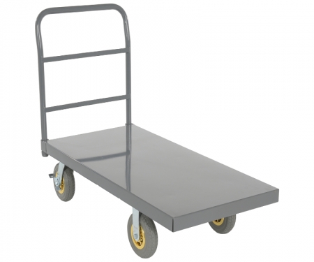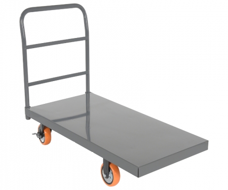 - Platform truck with solid, smooth steel deck is all welded for maximum strength
